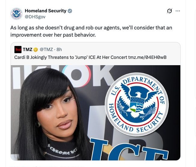 Haitian-American rapper’s onstage quip about protecting fans from ICE sparks official response and explosive online debate Palm Desert, CA / Washington, D.C. – February 12, 2026 Cardi B kicked off her “Little Miss Drama” tour on February 11 in Palm...