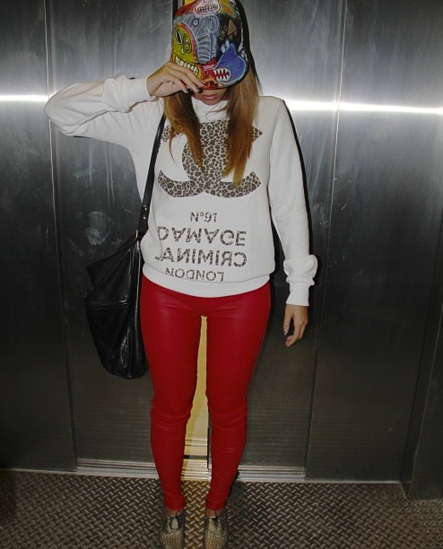 Beyonce-Instagram-Criminal-Damage-Leopard-Print-White-91-Sweater-Red-leather-Pants-and-Ron-Bass-In-My-Mind-Snapback-Cap-1