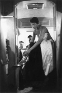 12th May 1951: Haitian singer Josephine Premice ties the ribbons on her high heeled shoes before a performance. Her cabaret act mixes French Canadian songs, astringent American lyrics and volcanic Haitian melodies. Original Publication: Picture Post – 5298 – Two Men Go To Hollywood (3 – When Stars Relax) – pub. 1951 (Photo by Kurt Hutton/Picture Post/Getty Images)