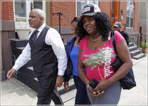 Mirlande Wilson (R) of Haiti arrives with her attorney Edward Smith Jr. to a news conference where Wilson claimed to have the winning ticket for the Mega Millions jackpot lottery in Baltimore, Maryland, April 4, 2012. REUTERS/Jose Luis Magana (UNITED STATES – Tags: SOCIETY)