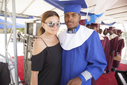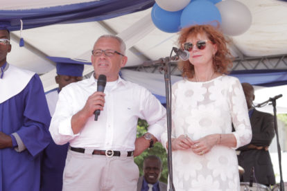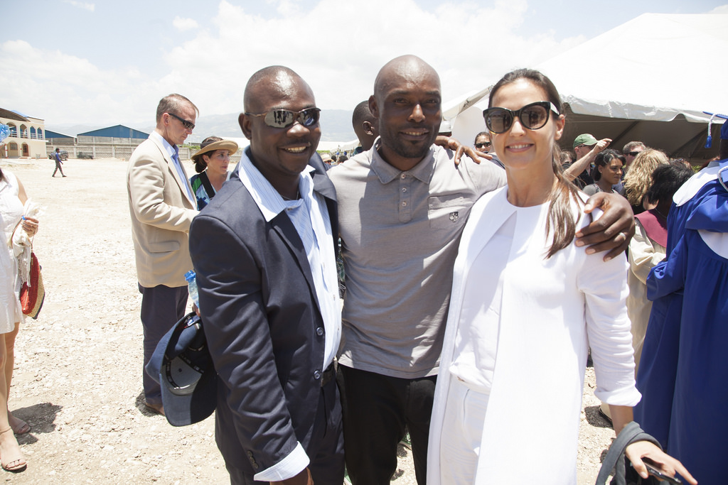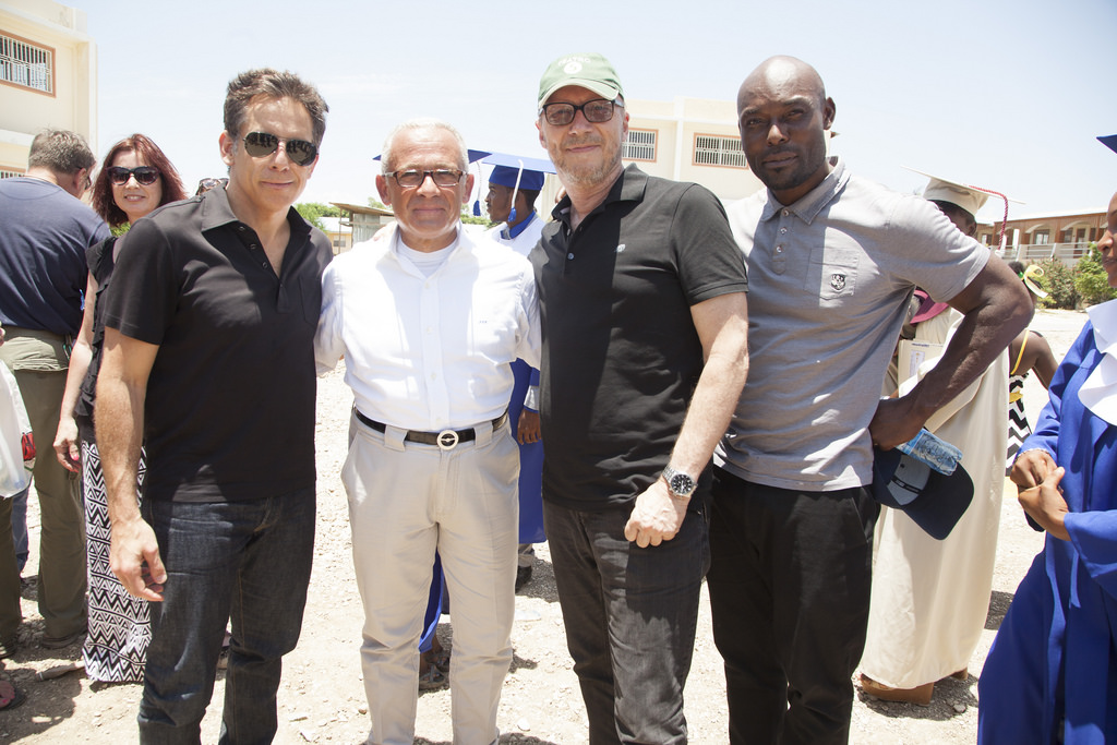 The graduation was a proud moment for the hundreds of parents who sat under a large tent and cried, but it was just as emotional for the group of 50 Artists for Peace and Justice (APJ) family which included director Paul Haggis, designer Donna Karan, Haitian actor Jimmy Jean-Louis, Actor Ben Stiller, Christine Taylor and Susan Sarandon. The group had all been there from the beginning to watch a large dirt field turn into a beautiful institution for learning and hope.