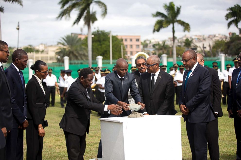 Haitian President Jovenel Moise attended a commemoration event in Port-au-Prince, Haiti, on Friday. He was joined by wife, Matine Moise, and other officials as they laid the first stone at the National Palace at the capital