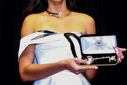 , The Haitian American Chamber of Commerce Jeff Lozama who awarded her an honorary Yopro, the freshman class of their 20 under 40 young professional award.