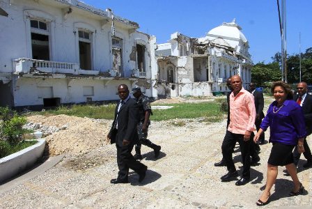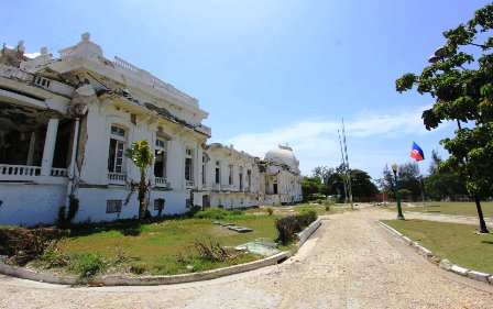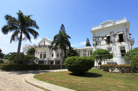 The earthquake toppled hundreds of buildings in the capital of Port-au-Prince and in other cities to the south. The National Palace was among them, its white dome and the rest of the structure slowly falling into itself. The collapse forced government officials to work from a tiny police station near the international airport after the earthquake, coordinating the arrival of aid. Authorities now conduct day-to-day