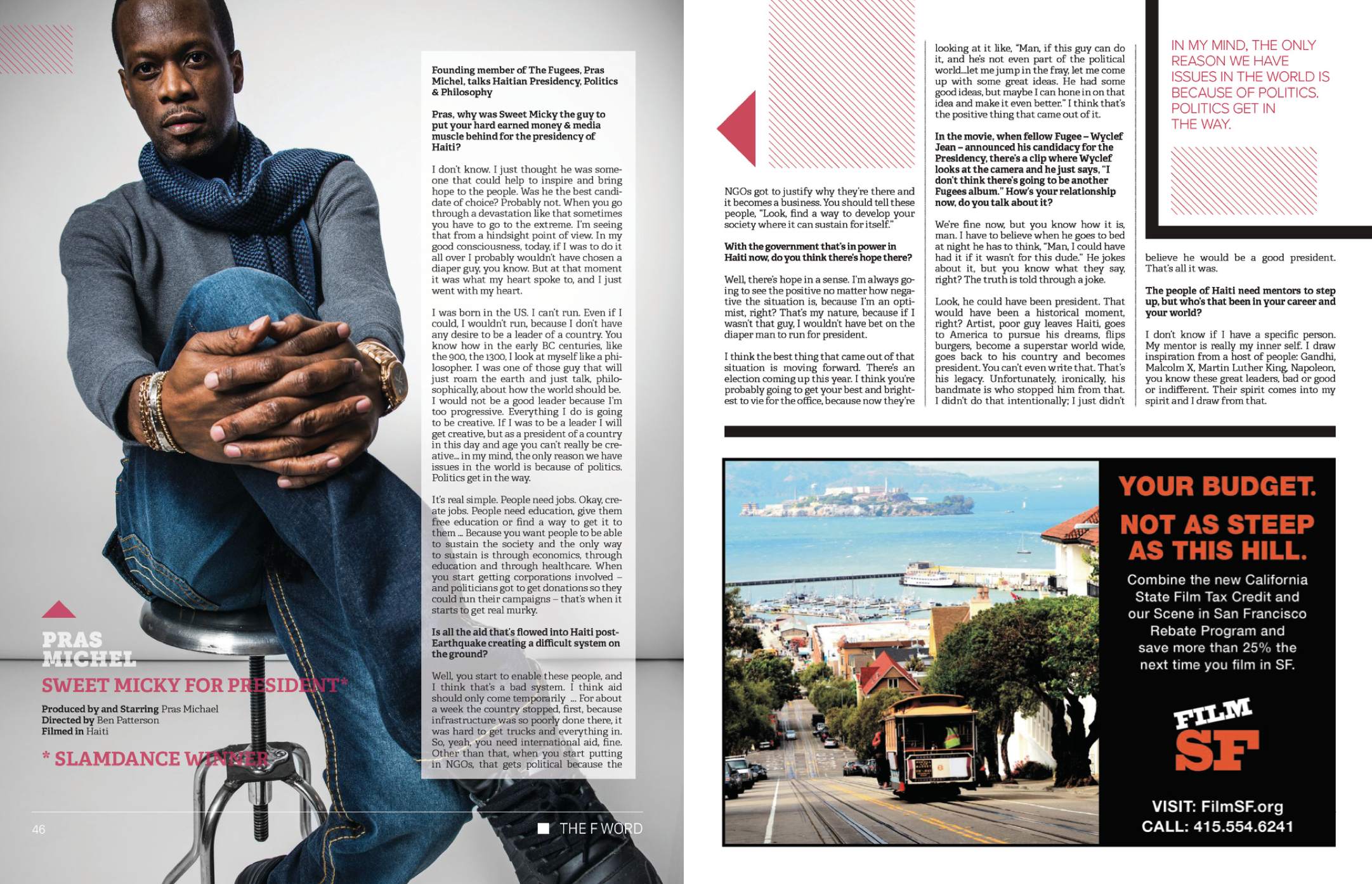 The article continues with questions which includes how his decision to endorse Michel Martelly affected his relationship with his former band mate and close friend Wyclef Jean.